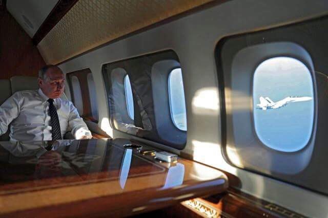 В сети появились кадры с президентом России Владимиром Путиным, совершающим визит в Сирию на борту самолета.