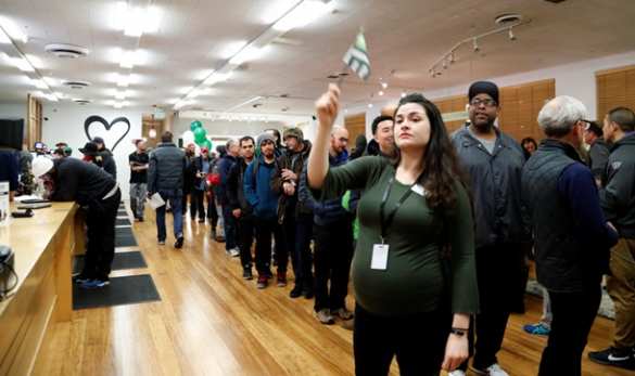 Возле магазинов, где продается каннабис, выстраиваются гигантские очереди, пишет Fox News.