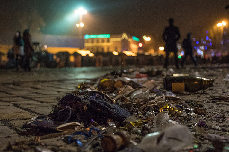 Коммунальные службы работали в усиленном режиме в ночь на 1 января. Позднее появились фото мусора после новогодней ночи в центре Киева.