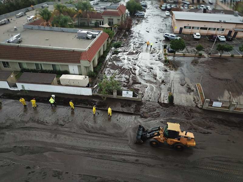 Мощные ливни обрушились на территорию округа спустя несколько недель после лесных пожаров. «Ожоговые шрамы» способствуют ливневым паводкам, оползням и селям.