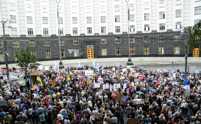 Отмечается, что участники акции также перекрыли улицу Садовую и требуют личной встречи с премьер-министром Владимиром Гройсманом.