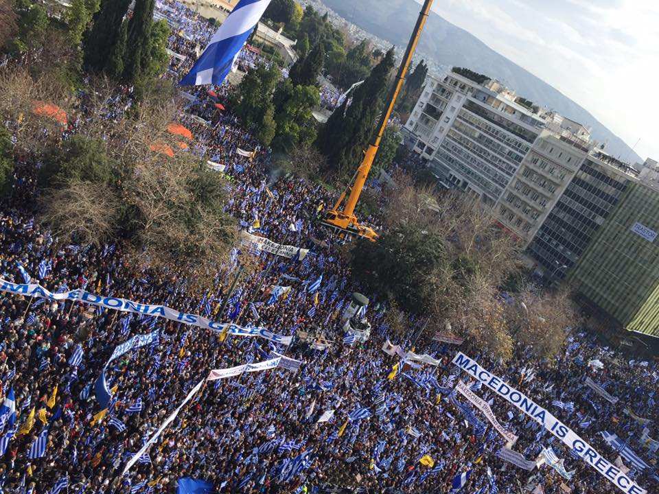 Thousands of Greeks #protest in #Athens against the use of the term #Macedonia in the new name of FYROM. #syntagma #Συλλαλητηριο #greece pic.twitter.com/TZxPiiBohX