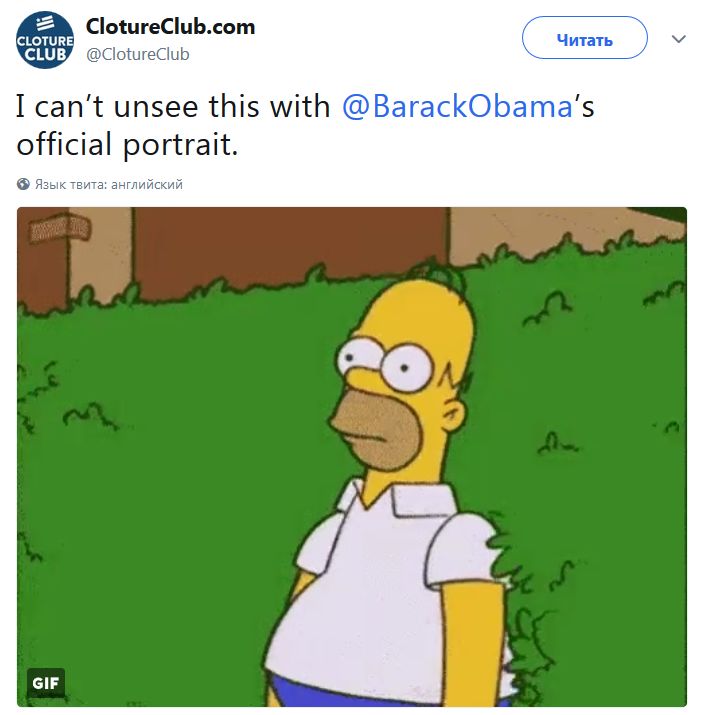 «Ну что… как вам портрет Обамы? Портретное сходство на уровне, но поза странная, и почему он сидит в костюме на стуле в кустах? Выглядит, будто он потерялся в саду-лабиринте в фильме „Сияние“», — пишет экс-агент ФБР, а сейчас сотрудница CNN Аша Рангаппа.