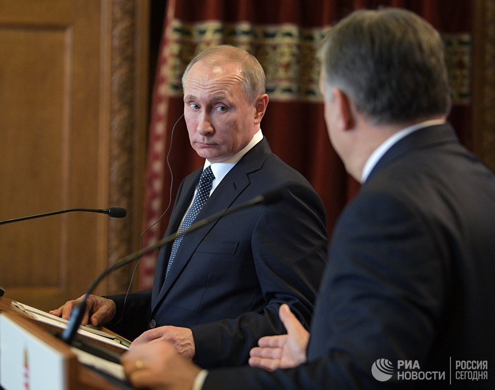 Президент РФ Владимир Путин и премьер-министр Венгрии Виктор Орбан во время совместной пресс-конференции по итогам встречи в Будапеште. 2 февраля 2017
