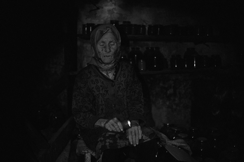 Пронзительный черно-белый рассказ о жителях разрушенной деревни на линии огня под Донецком показывает женщин, стариков и детей, прячущихся в подвале местной школы.