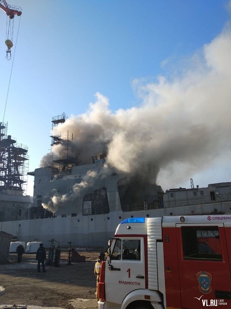 «В одном из носовых помещений, находящегося на ремонте на судостроительном заводе „Дальзавод” большого противолодочного корабля „Маршал Шапошников”, при проведении сварочных работ произошло возгорание.