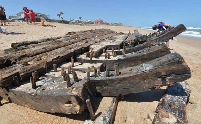 На атлантическое побережье США — на пляж одного из курортов Флориды — выбросило обломки фрегата XVIII века.