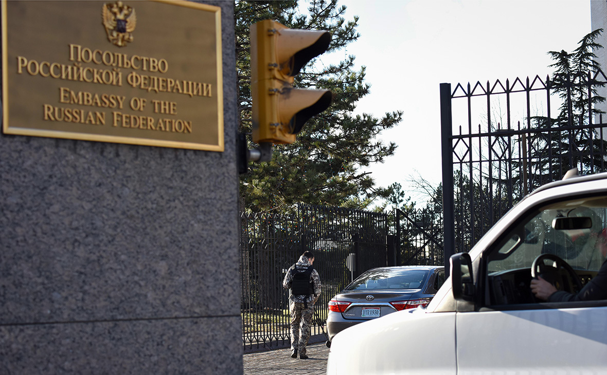 Власти США 26 марта потребовали, чтобы 60 российских дипломатов, в том числе 12 сотрудников миссии РФ при ООН, покинули страну, а также закрыли генконсульство РФ в Сиэтле и предписали покинуть резиденцию генконсула в Сиэтле до 25 апреля. Эта высылка дипломатов стала самой большой в новейшей истории отношений двух стран.