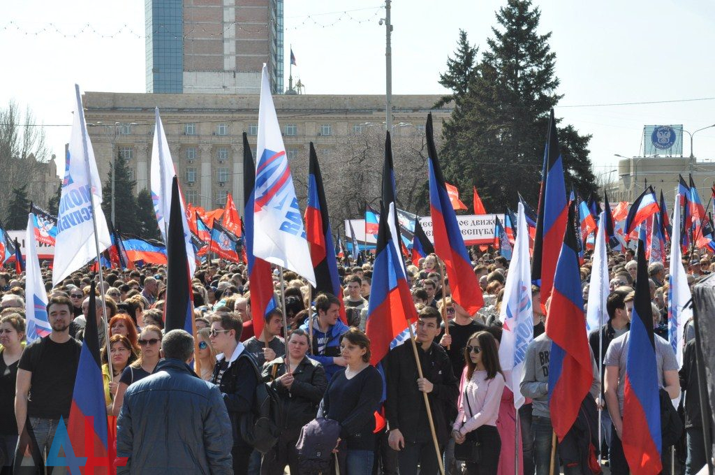 Более 10 тысячей жителей ДНР приняли участие в митинге по случаю четвёртой годовщины провозглашения Донецкой Народной Республики.
