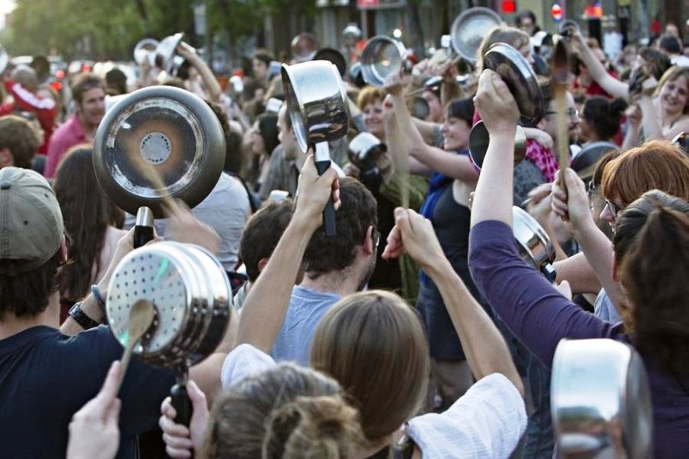 Ровно в 23:00 по местному времени (22:00 мск) местные жители в знак протеста начали высовываться из окон и бить половниками по кастрюлям. Акция продлилась 15 минут.