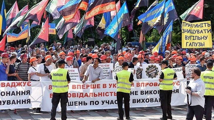 Утром 19 июня в центре Киева под стенами Верховной рады начался протестный митинг, в котором принимают участие сотни шахтёров из разных регионов Украины.