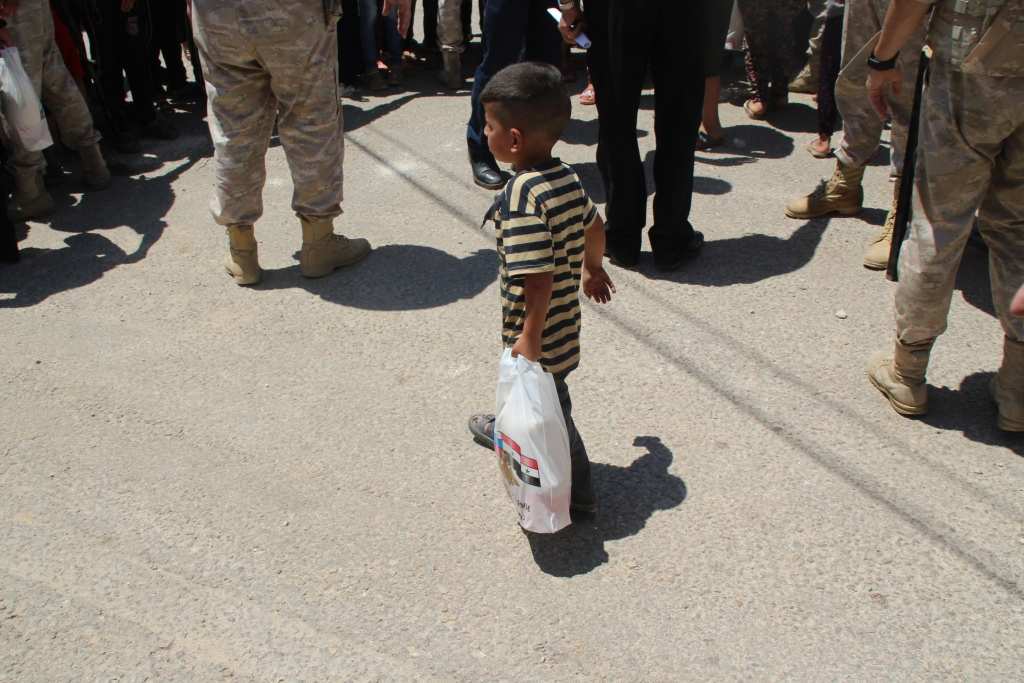 Российских военнослужащих встретили с радостью, улыбками и криками о дружбе между странами. Особенно радовались дети, с удовольствием фотографирующиеся с бойцами. Офицеры передали жителям 650 продовольственных пайков, общим весом 2795 кг (рис — 650 кг, мука пшеничная — 1300 кг, консервы мясные — 845 кг).