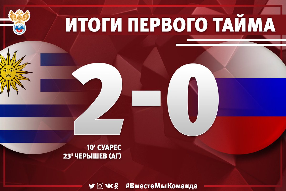 90' Увы, вновь пропустили россияне. Игорь Акинфеев отразил удар в упор после подачи с углового, но на добивании оказался Эдисон Кавани. 3:0 в пользу сборной Уругвая.