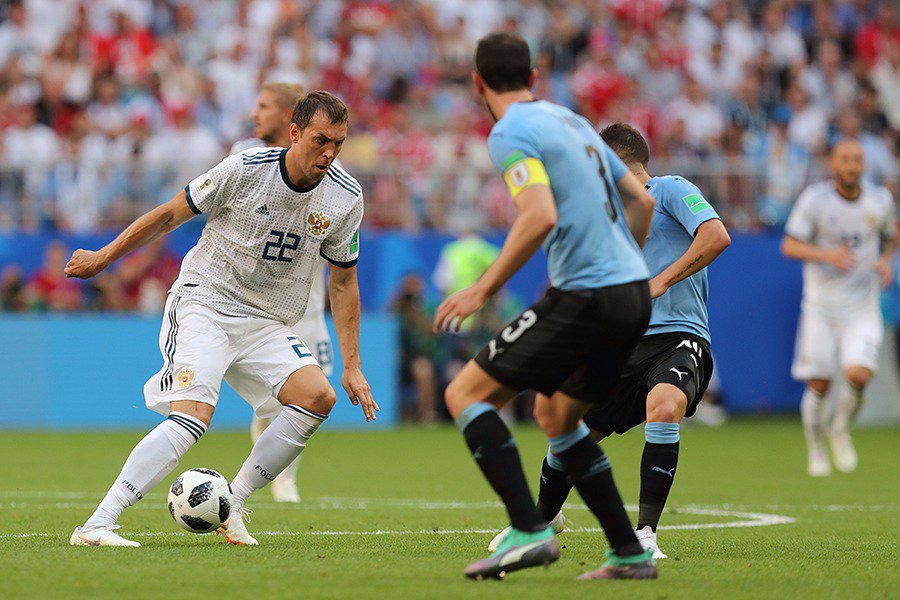 Сборные Уругвая и России играют за 1-е место в группе А. Команды одержали по две победы на ЧМ-2018.