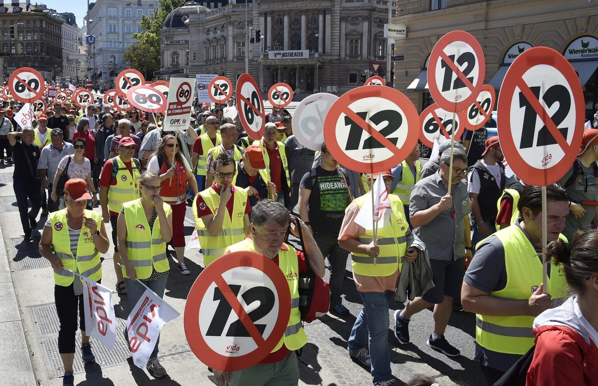 В субботу, 30 июня, в столице Австрии Вене десятки тысяч людей протестовали против планов правительства принять изменения в трудовое законодательство, которые сделают возможным внедрение работодателями 12-часового рабочего дня без повышения оплаты труда.