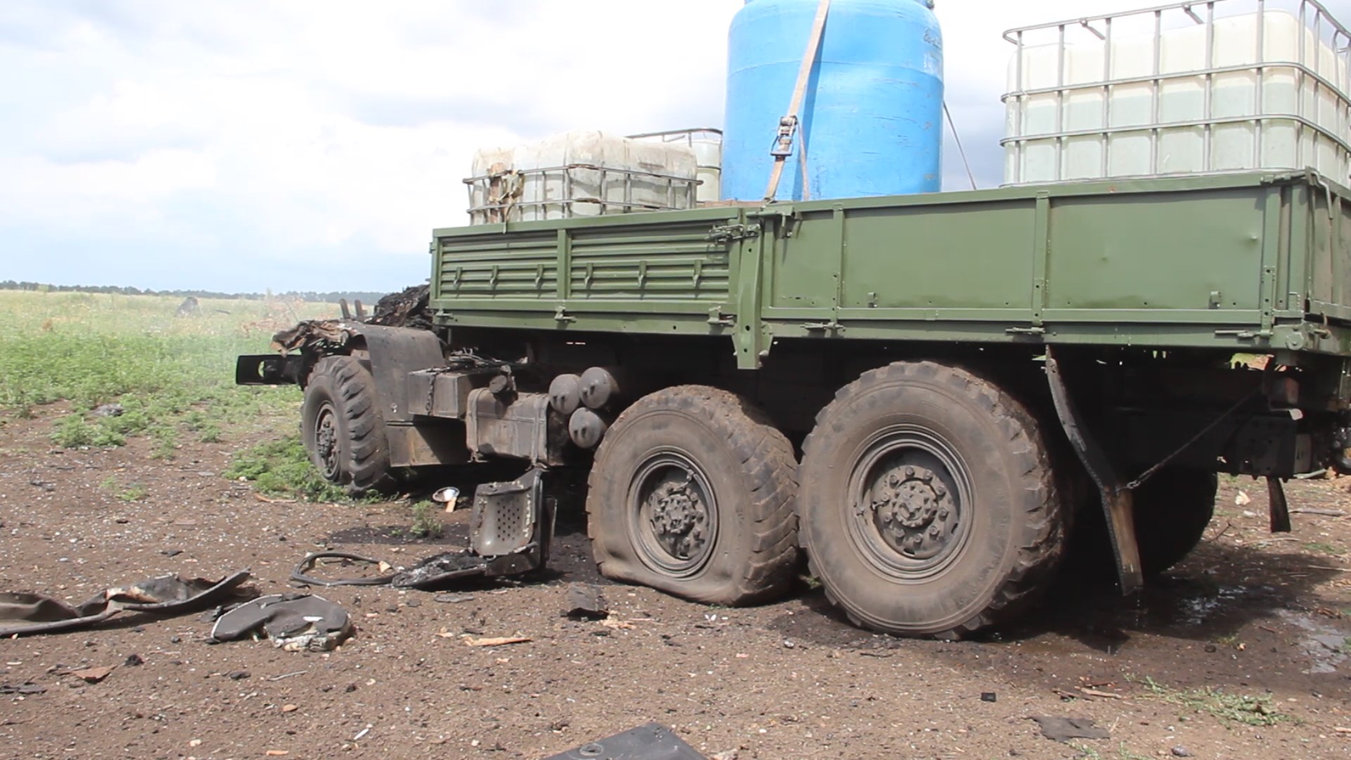 Вчера украинские террористы из 93-й бригады ВСУ применили ПТРК. Выпустив из него две ракеты, террористы уничтожили КамАЗ, перевозивший воду. Причем первой ракетой боевики промахнулись, а второй попали точно в автомобиль, что говорит о целенаправленном уничтожении машины, которая не относится к боевой технике.