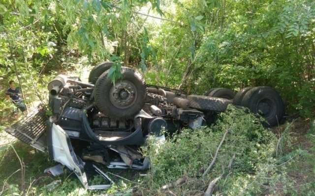 Сегодня на трассе под Запорожьем произошло ДТП. На дороге в Никополь из Черкасс грузовой автомобиль МАЗ съехал в кювет и оказался на крыше.