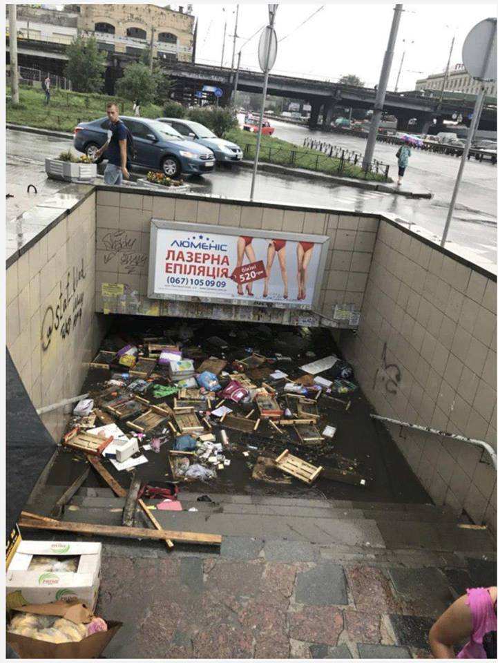 25 июля сильнейший ливень превратил Киев в «помойную Венецию»: потоки воды, несущие мусор с городских свалок, затопили подземные переходы и низкие участки улиц.