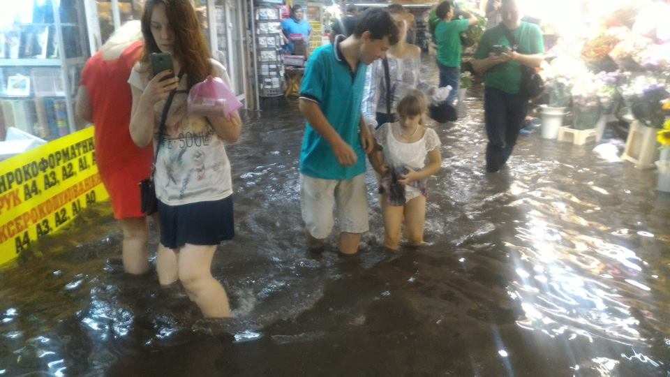 Киевляне публикуют фотографии потопа в соцсетях, сопровождая их фотожабами на мэра украинской столицы Виталия Кличко.