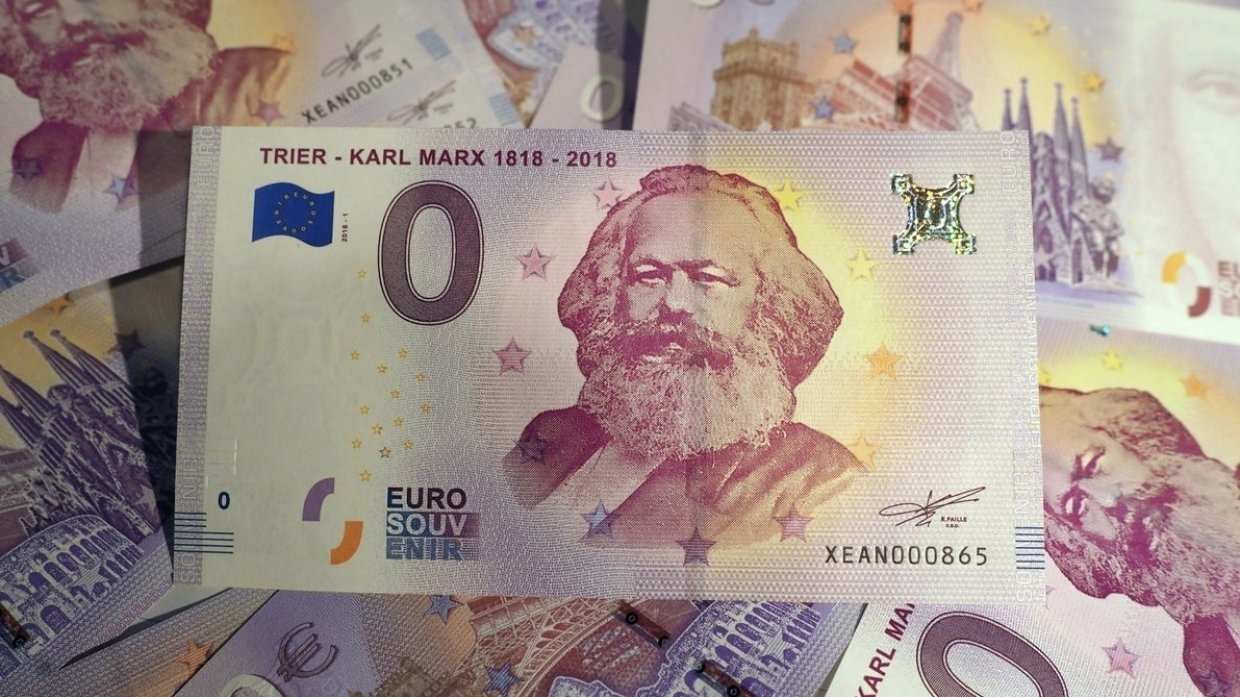 Более 100 тысяч сувенирных купюр номиналом ноль евро с изображением Карла Маркса продано по всему миру, сообщает телерадиокомпания SWR.