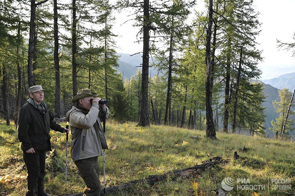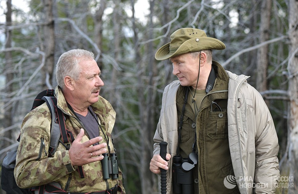 Его сопровождали в течение двух дней директор Саяно-Шушенского заповедника Геннадий Киселев и глава Тывы Шолбан Кара-оол. «Были также министр обороны Шойгу и директор ФСБ Бортников», — добавил он.