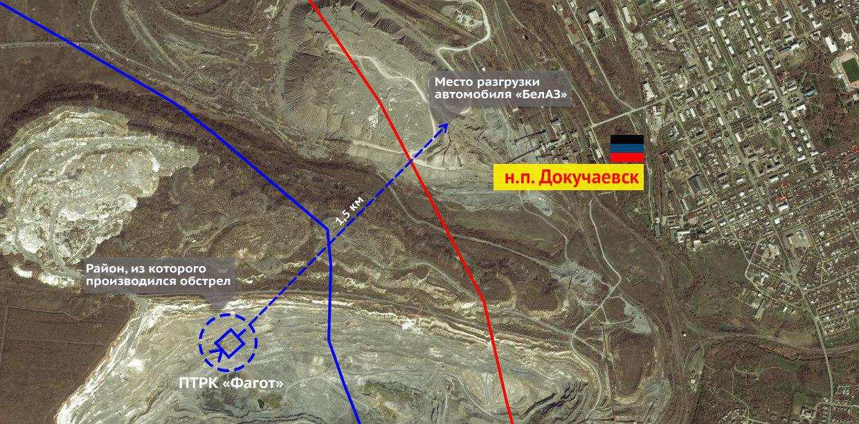 Уже известно, что уничтоженный БелАЗ принадлежит компании «Витязь». Он должен был вывезти отсев известняка на экспертизу на фабрику, и в тот момент, когда грузовик спустился для разгрузки массы, по нему был нанесён прицельный удар.