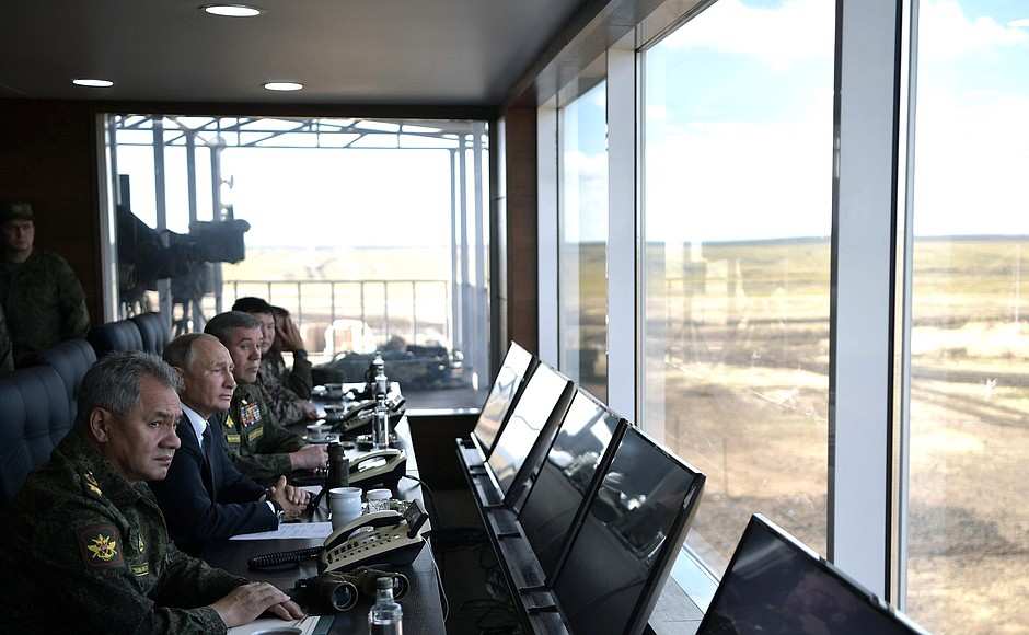 Верховный Главнокомандующий ВС России президент Владимир Путин побывал на военном полигоне Цугол (Забайкальский край), где с командного пункта наблюдал за ходом основного этапа крупнейших манёвров «Восток-2018».