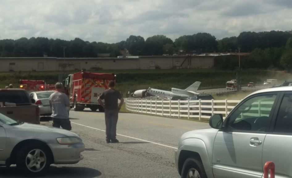 Инцидент произошел в четверг днем в городе Гринвиль. Приземлившийся в городском аэропорту самолет Dassault Falcon 50 выехал за пределы посадочной полосы и практически развалился пополам. На фотографии, опубликованной в Twitter местной полиции, видно, что у воздушного судна отвалилась носовая часть.