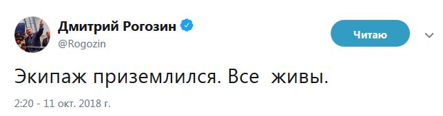 «Экипаж приземлился. Все живы», — написал Рогозин на своей странице в соцсети.