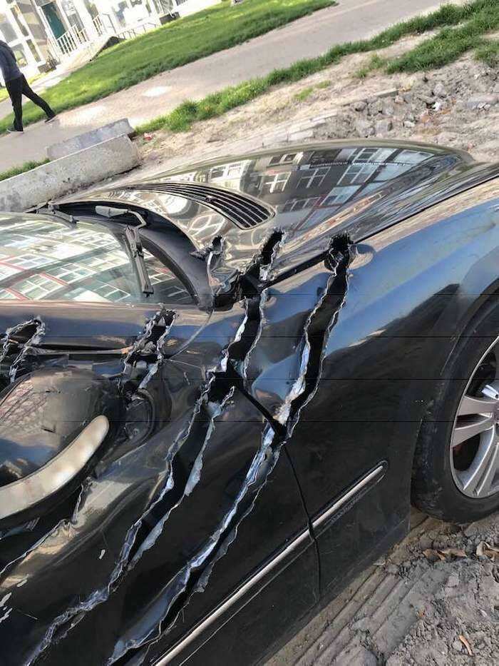 В сообществе «Дарницкий район — Киев Тайм» в одной из социальных сетей появились фотографии странно изуродованной машины.