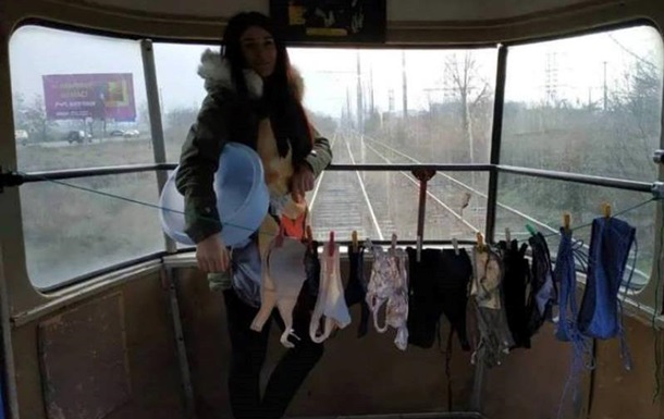 В Одессе одна из местных жительниц развесила нижнее бельё сушиться в трамвае, протестуя таким образом против отсутствия тепла в квартирах.