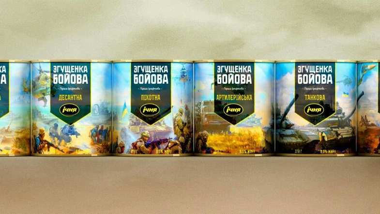 «Мы должны поддерживать друг друга: общество — армию, а армия — общество. Лимитированная партия сгущенного молока посвящается украинской армии, в которую мы искренне верим. На трех крафтовых упаковках «Боевой сгущенки» от Ични изображены солдаты разных войск.