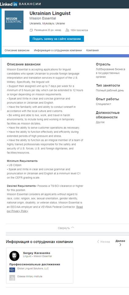 Вот ссылка на это объявление: https://www.linkedin.com/jobs/view/ukrainian-linguist-at-mission-essential-868182894/