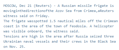 Российский ракетный фрегат идёт в Азовское море, — Reuters