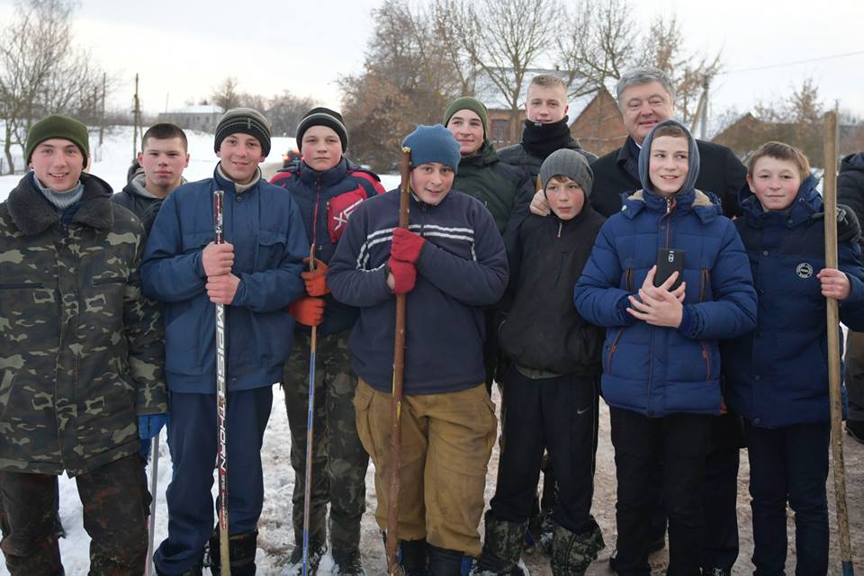 Порошенко порадовался за украинских детей, играющих в хоккей палками и без коньков (ФОТО)