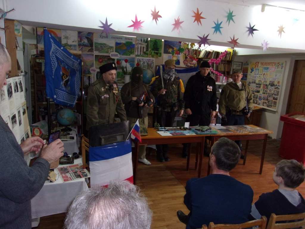 Заполнить данный пробел попытались представители историко-патриотического клуба имени Руслана Кочубея, КХО Нахимовской терской сотни города Севастополь и Крымской региональной военно-спортивной патриотической молодежной общественной организации «Пересвет», которые в библиотеке-филиале № 8 им. С. К. Славича (руководитель — библиотекарь I категории Ольга Крымская) оформили выставку и представили фотографии с ялтинскими моментами «Русской весны».