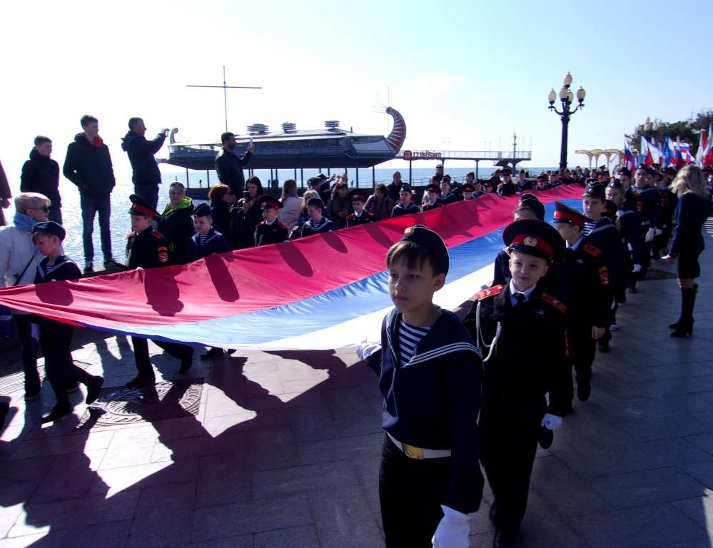 Тысячи ялтинцев вышли на Набережную, чтобы принять участие в праздничной демонстрации. Прекрасному настроению также способствовала хорошая погода и мирное небо над головой. Ведь никому не надо объяснять, чего удалось избежать крымчанам, благодаря их решительности и единодушию в неприятии киевского бандеровского режима.
