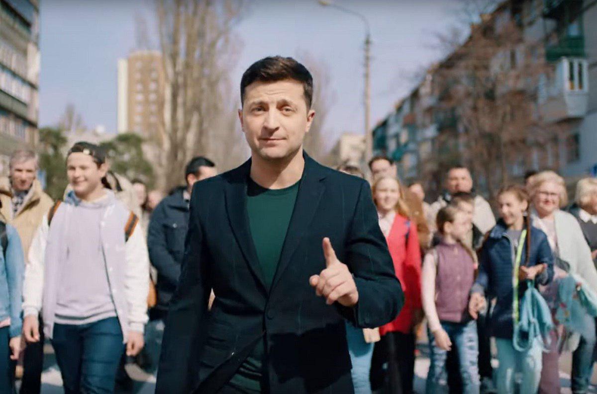 Мы разные, но такие одинаковые. Объединяться, чтобы двигаться вперед. Ведь 21 апреля выбор только один — прошлое или будущее», — говорит Зеленский, возглавив радостных украинцев, перешедших дорогу на зелёный свет (один из якорей его предвыборной кампании).