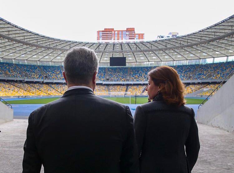 — сейчас на стадионе концерт, солирует гастролёр Петро Порошенко.