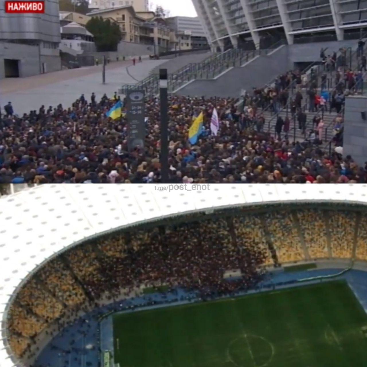 Несколько тысяч человек по приглашению Порошенко зашли на трибуну стадиона, постояли около десяти минут и расходятся.