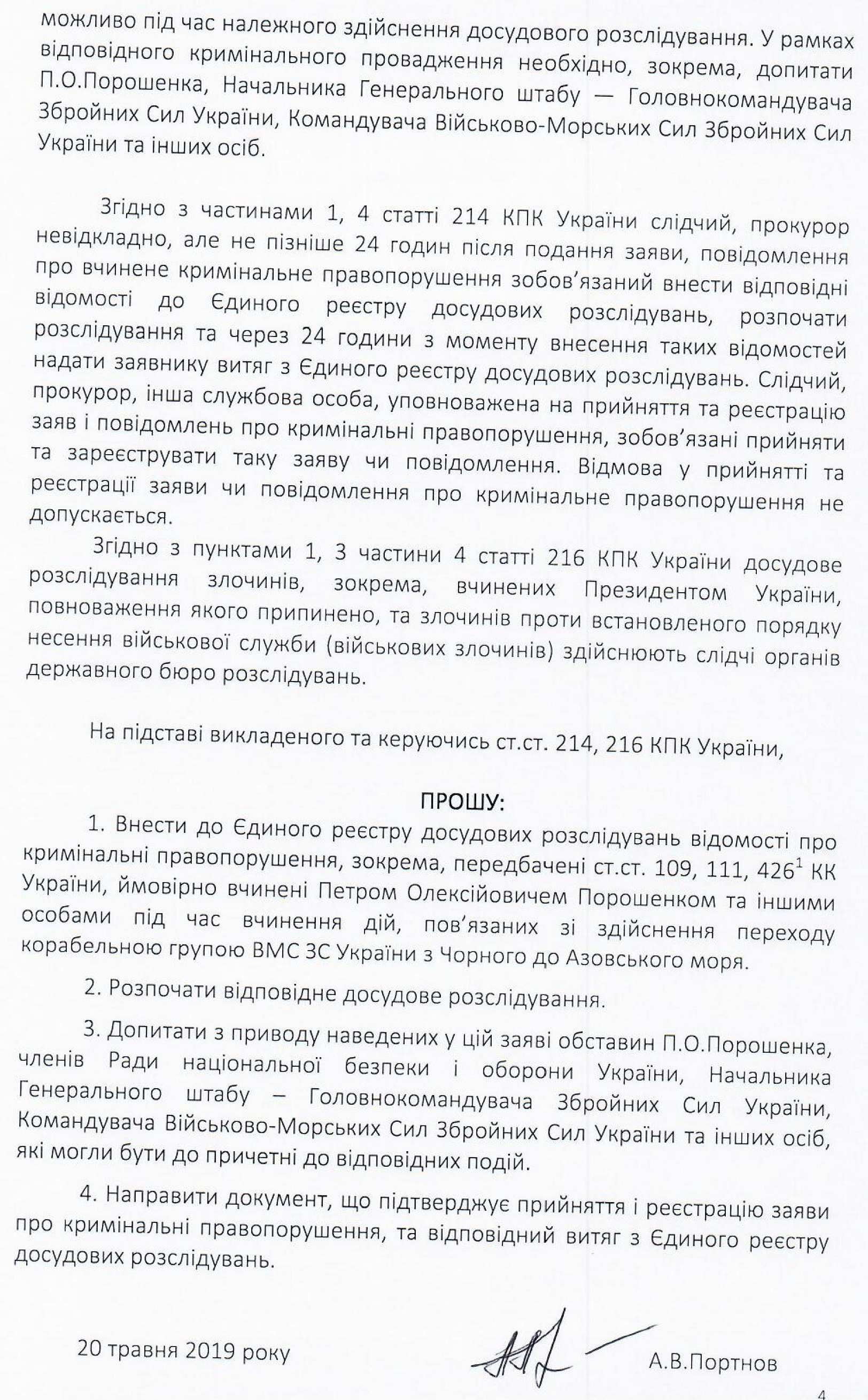 «Друзья, сегодня Порошенко официально потерял неприкосновенность от уголовного преследования, и час назад мы направили в Государственное бюро расследований первое заявление о преступлении.