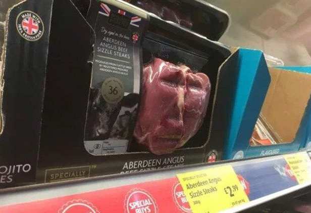 Так, в одном из супермаркетов Aldi в Кройдоне, что находится на юге Лондона в Британии, нашли странный стейк из говядины от производителя Aberdeen Angus. Его обнаружил британский музыкант Мэт Гордон, поделившийся своей необычной находкой в социальных сетях.
