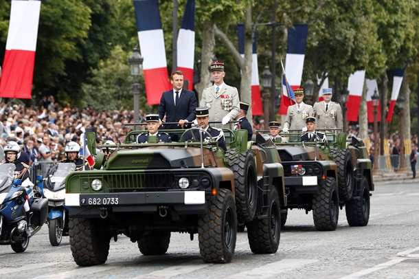 По Елисейским полям торжественным маршем прошли более четырех тысяч военнослужащих. В параде задействованы 69 самолетов, 40 вертолетов, до 200 мотоциклов, а также более 200 лошадей.