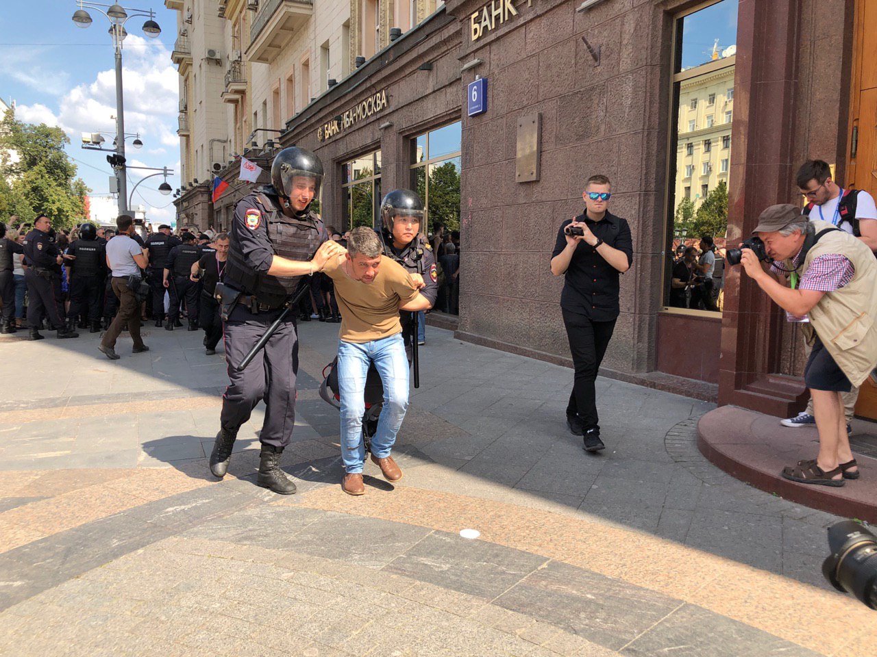 Напомним, что с утра в центре Москвы были задержаны несколько десятков человек, но до сих пор процесс был миролюбивым.