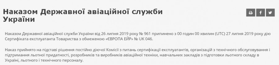 26 июля Госавиаслужба внезапно отозвала разрешение на полеты у авиакомпании, без указания причины, но, по слухам, что из-за перевозок контрабандного оружия.