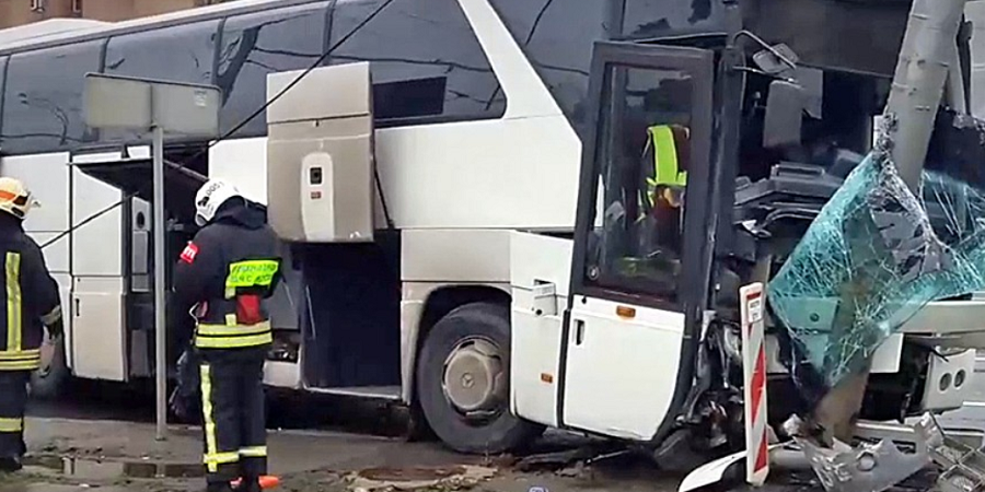 По предварительным данным, водитель автобуса не справился с управлением на мокрой дороге, но сам он утверждает, что его подрезали.