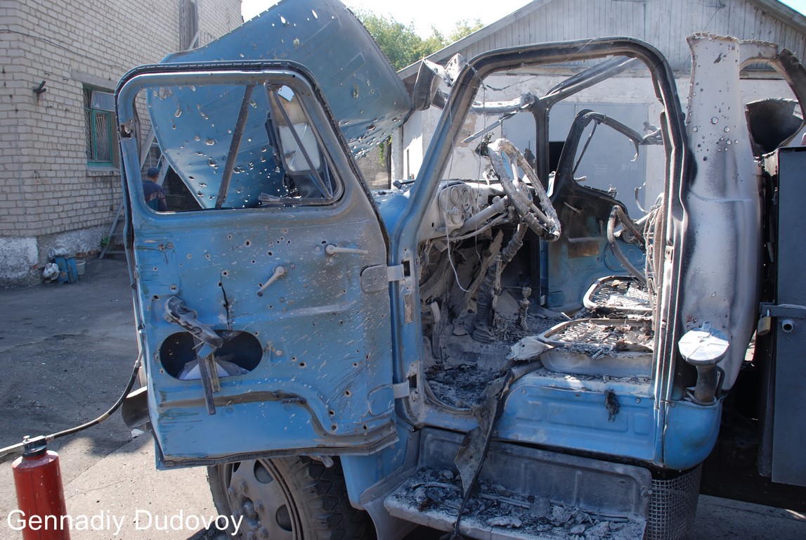 Две мины легли точно в кабину … чуть отклонись одна из них и попади в цистерну, до крышки залитую бензином, то все находящиеся во дворе сразу же сгорели бы как спички. А если бы сдетонировал склад с боеприпасами, то в центре Иловайска образовалась бы воронка, как после ядерного взрыва.