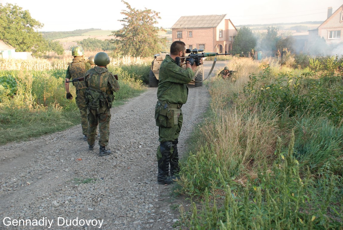 «Мы получили информацию, что в конце улицы Суворова, если мне память не изменяет, замечены украинцы из батальона “Донбасс”. Моторола немедленно отправил туда группу. Проводник — местный, иловайский Танцор, снайперы — российские добровольцы Казачок и Коллектор, все остальные — мотороловцы: Малой, Артист, Шустрый, Бармен, Младшой и я, Корреспондент.