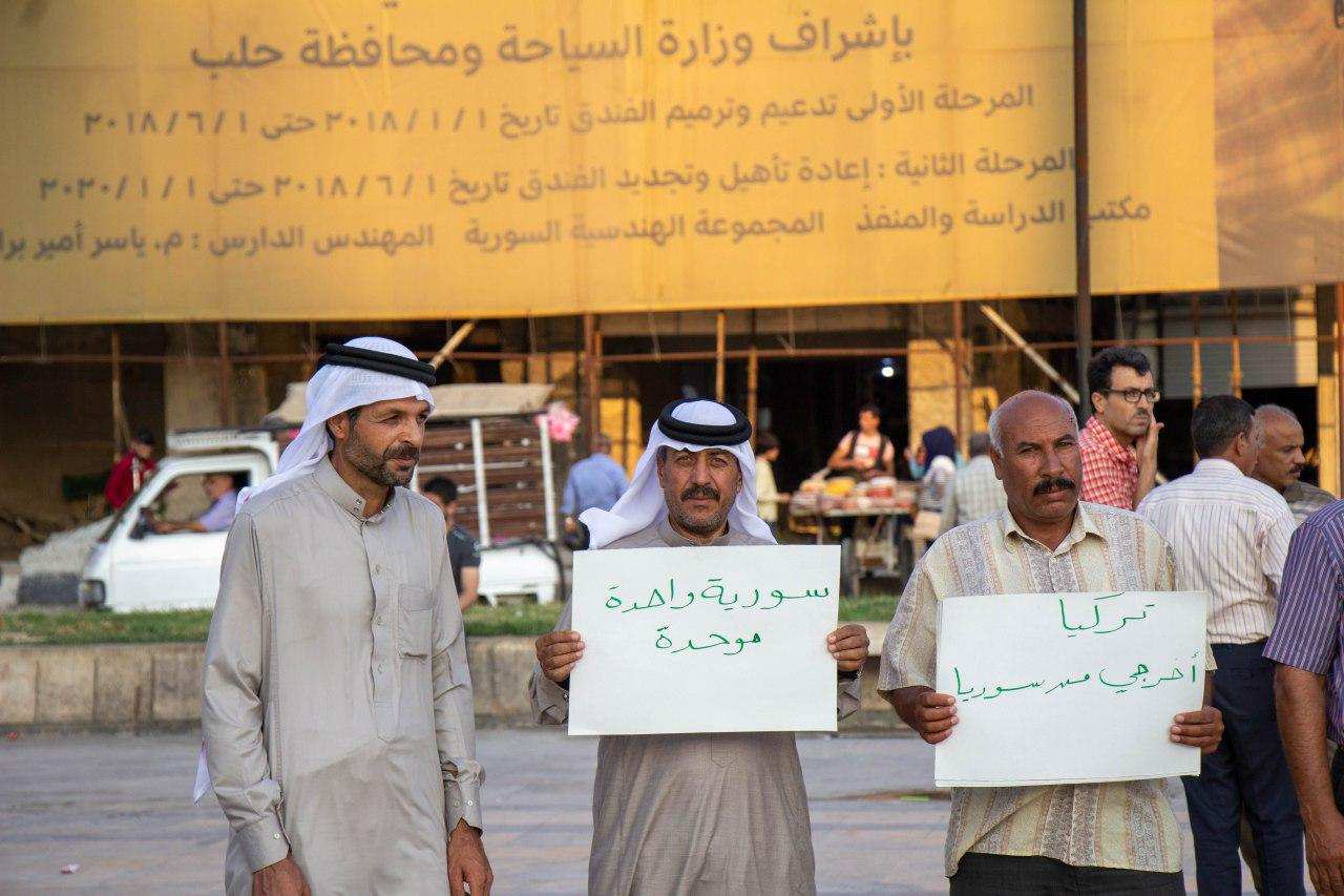 Напомнили протестующие и о том, что война в Сирии была развязана при активном участии Белого дома, а промышленное оборудование и станки из осажденного боевиками Алеппо вывозились на территорию Турции, за что тогда еще премьер-министр Турции Реджеп Тайип Эрдоган получил прозвище «Алеппский вор».