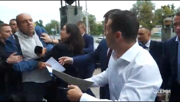 На кадрах, которые появились в Сети, видно, что Мендель и охранники Зеленского энергично отталкивают журналиста Сергея Андрушко, который приблизился к главе государства, причём пресс-секретарь хватается за микрофон, чтобы несогласованный вопрос не прозвучал во всеуслышание.